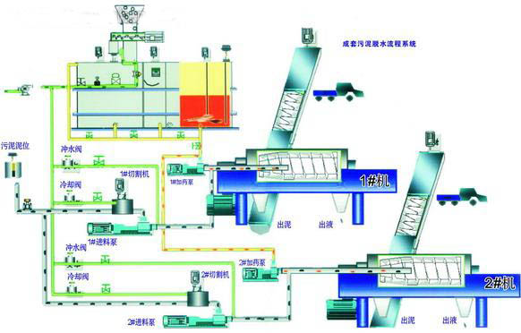 2.3.1 系統(tǒng)的建立為了達(dá)到兩臺旋挖鉆機(jī)所需的穩(wěn)定泥漿指標(biāo),實現(xiàn)泥水分離的理想效果,根據(jù)地質(zhì)構(gòu)造及粒徑比例分布和單位時間內(nèi)的處理量,設(shè)計本系統(tǒng)。本系統(tǒng)由兩用一備三臺泥漿分離機(jī)凈化系統(tǒng),一套加藥系統(tǒng)等組成。